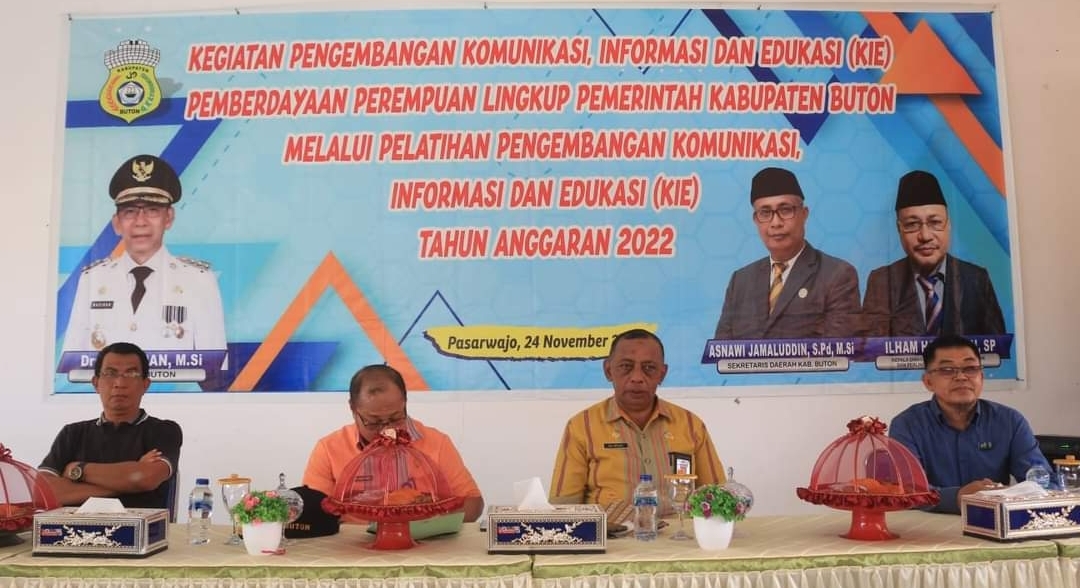 Kegiatan tersebut dilaksanakan di Gedung Agung Serbaguna SMKN 2 Pasarwajo. Adapun tema kegiatan adalah Pengembangan informasi dan edukasi (KIE) pemberdayaan perempuan lingkup Pemerintah Kabupaten Buton melalui pelatihan pengembangan komunikasi informasi dan edukasi.
