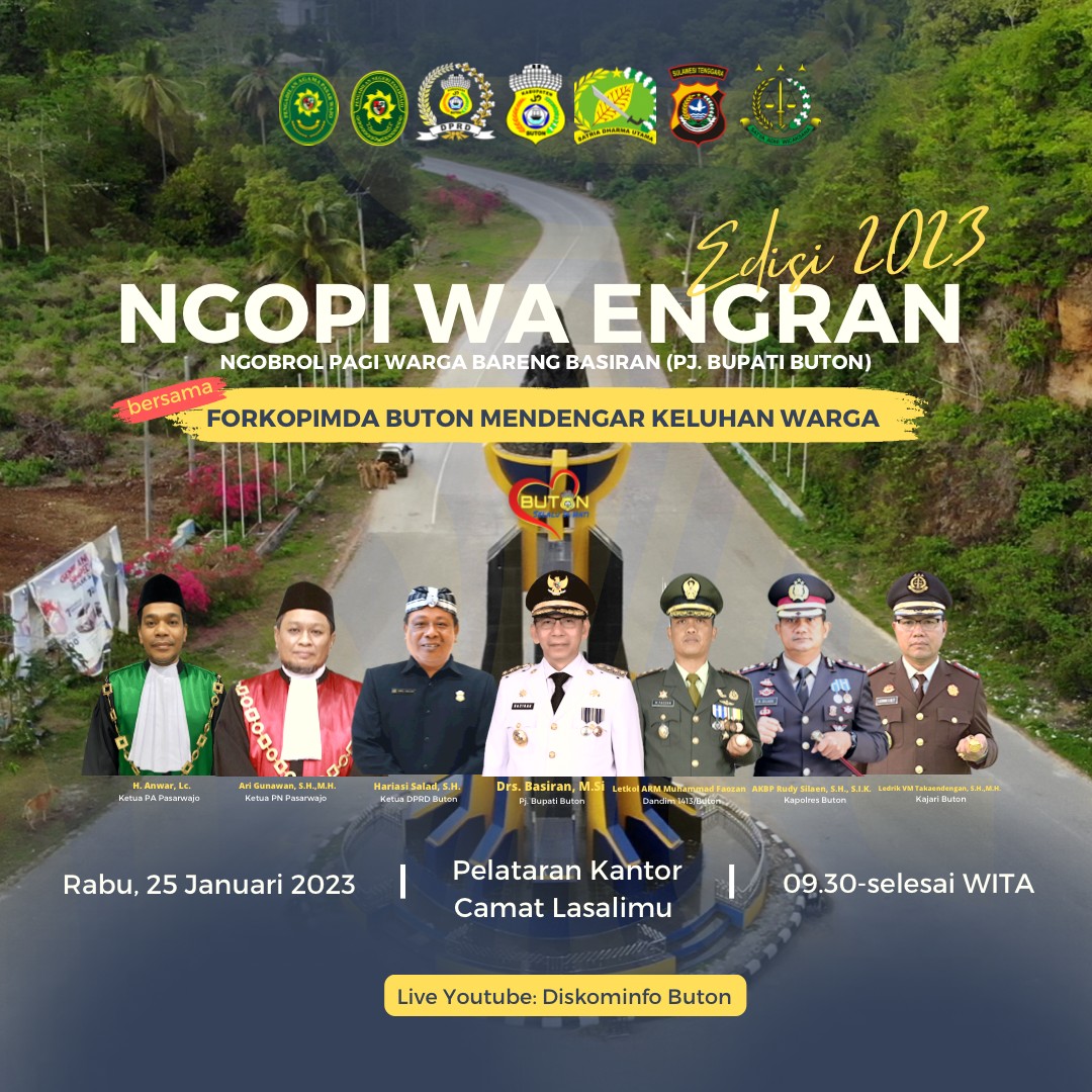 Ngopi Wa engran perdana digelar September 2022 lalu. Kegiatan tersebut digelar guna mendekatkan antara Pemerintah dan masyarakat, menjadi wadah menyalurkan aspirasi warga untuk membangun Buton yang lebih baik ke depan dalam bingkai Buton Selalu di hati.