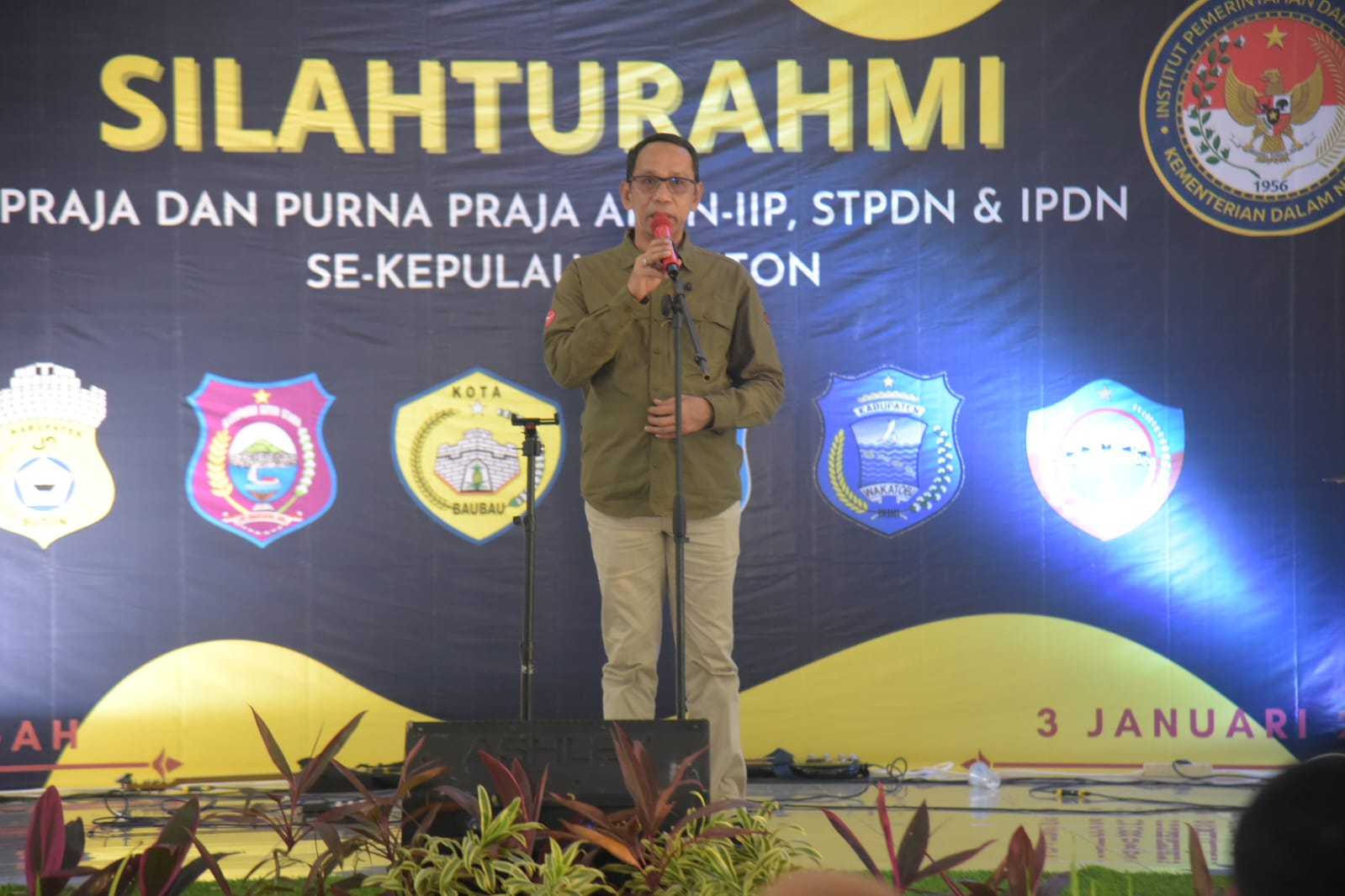 Labungkari – Praja dan Purna Praja Institut Pemerintahan Dalam Negeri (IPDN) se-Kepulauan Buton (Kepton) menggelar acara silaturahmi di gedung Kesenian Lakudo, Kabupaten Buton Tengah (Buteng), Selasa (3/1/2023).