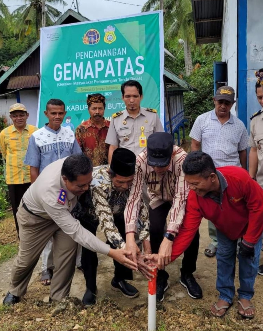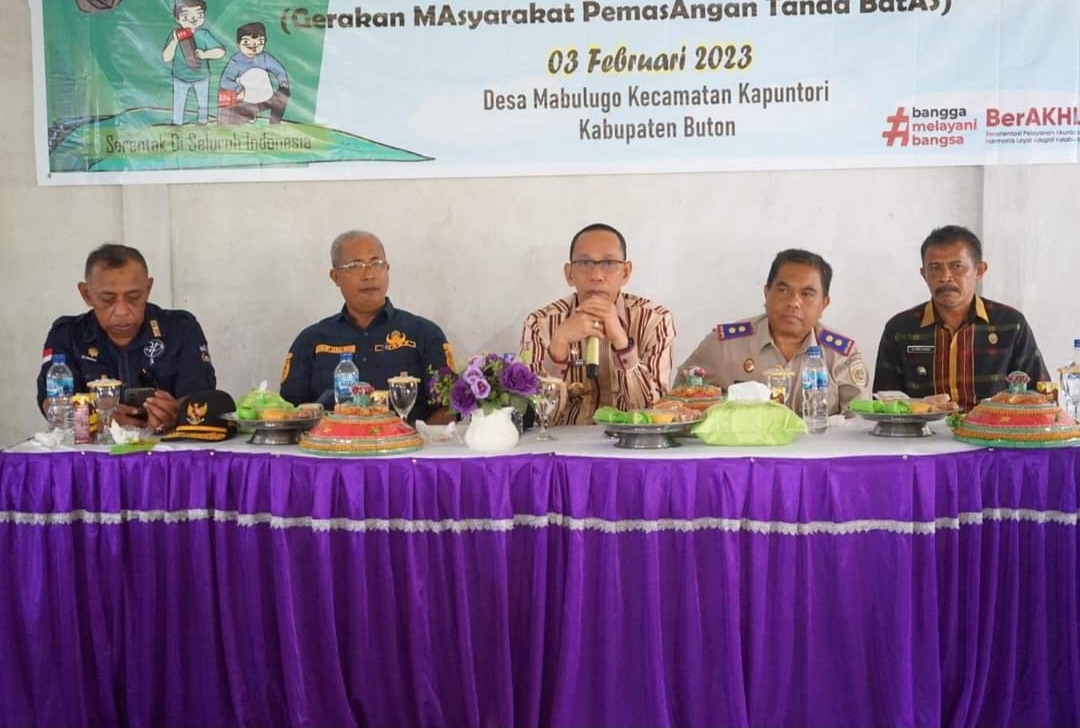 Kegiatan pelaunchingan ditandai dengan pamasangan patok batas tanah oleh Pj Bupati Buton bersama Kepala Pertanahan dan tokoh masyarakat Kapontori, di Desa Mabulugo, Kecamatan Kapontori, Kabupaten Buton.