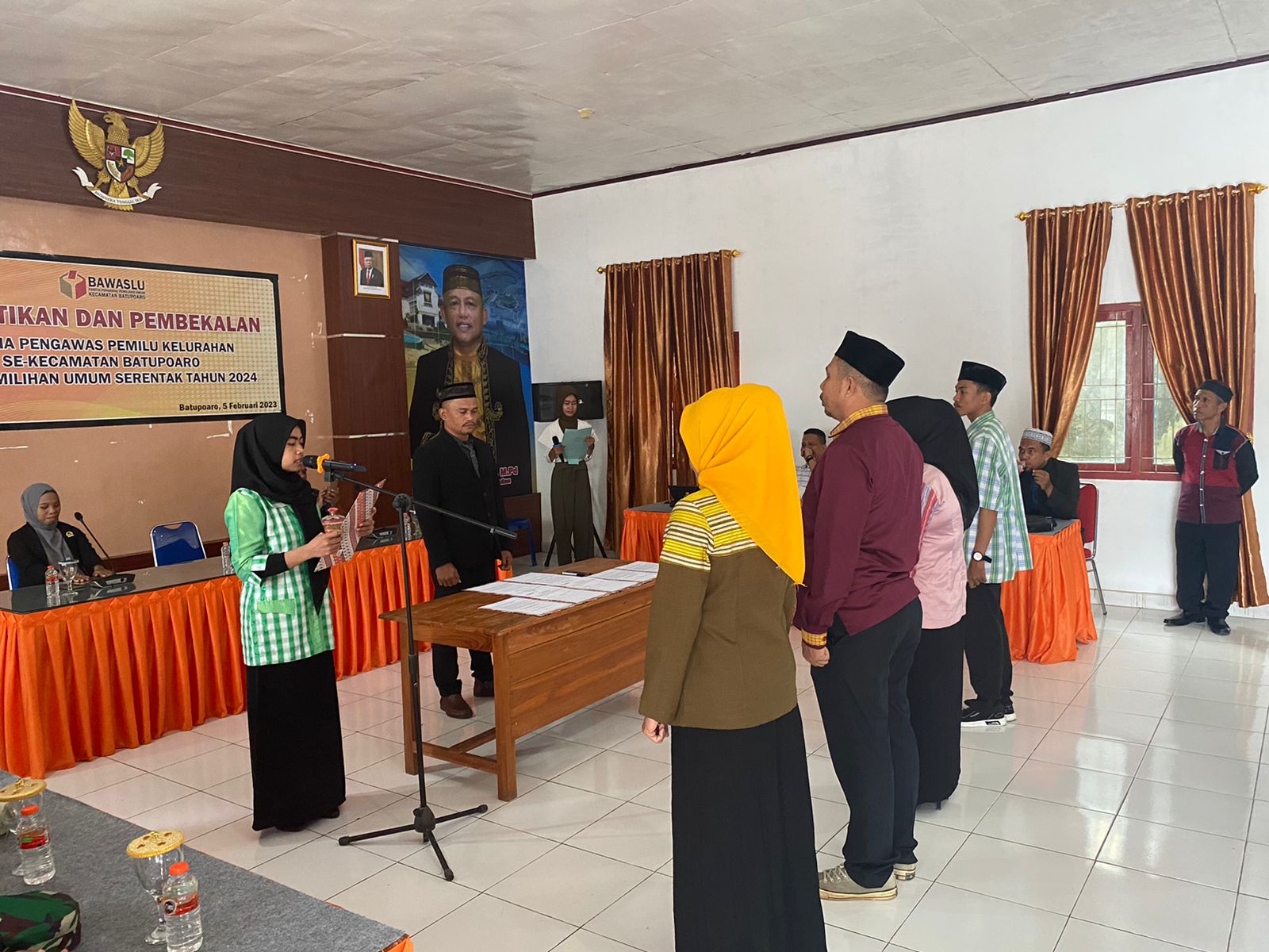 Baubau – Pengawas Pemilu Kecamatan (Panwascam) Batupoaro melantik lima anggota Pengawas Kelurahan Desa (PKD) di gedung Aula kantor Kecamatan Batupoaro Kota Baubau, Sulawesi Tenggara (Sultra), Minggu (05/02/2023).