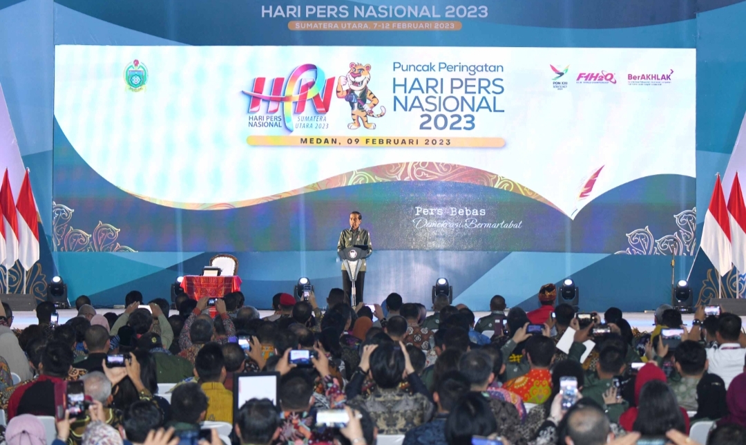 Medan – Presiden RI Joko Widodo menghadiri Puncak Peringatan Hari Pers Nasional (HPN) Tahun 2023 yang digelar di Gedung Serbaguna Pemerintah Provinsi Sumatra Utara, Kabupaten Deli Serdang, Kamis (9/2/2023).