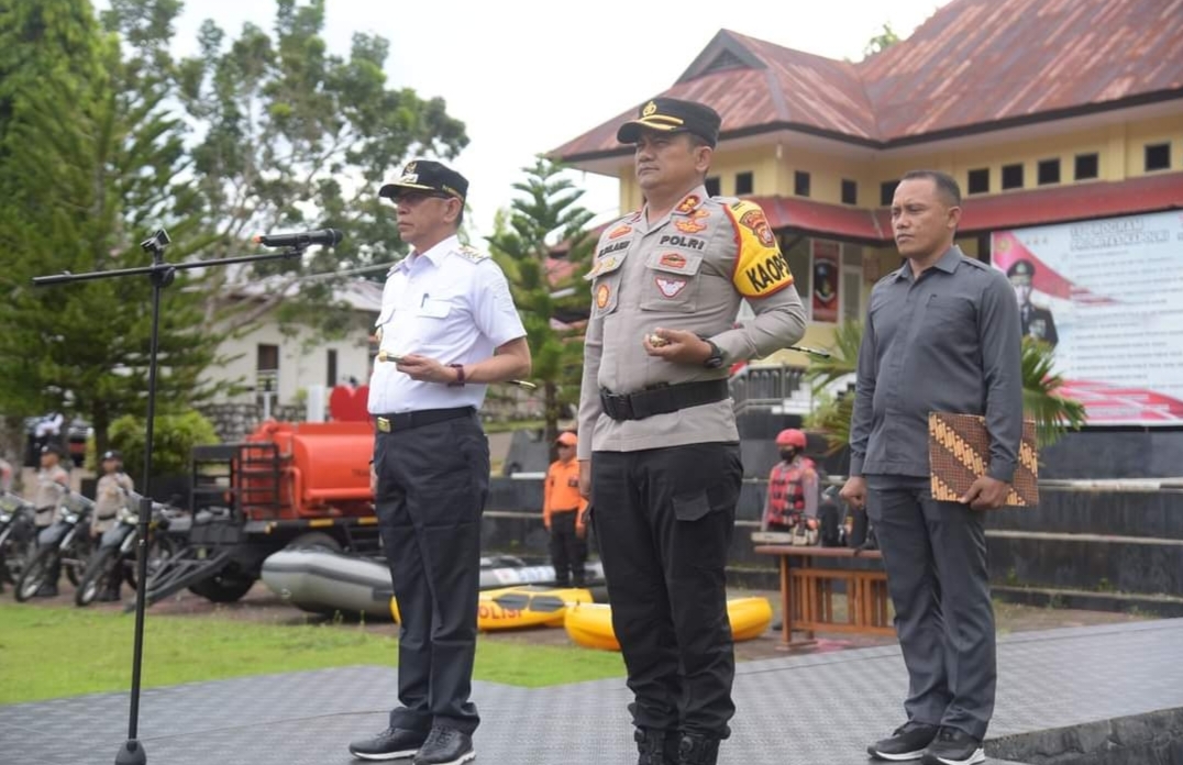 Pasarwajo – Pemerintah Kabupaten (Pemkab) Buton bersama TNI dan Polisi Resor (Polres) Buton menggelar apel gabungan kesiapsiagaan antisipasi dan penanggulangan Kesatuan Wilayah (Satwil), dalam rangka penanggulangan tanggap bencana alam tahun 2023 di wilayah hukum Polres Buton, Rabu (15/2/2023).