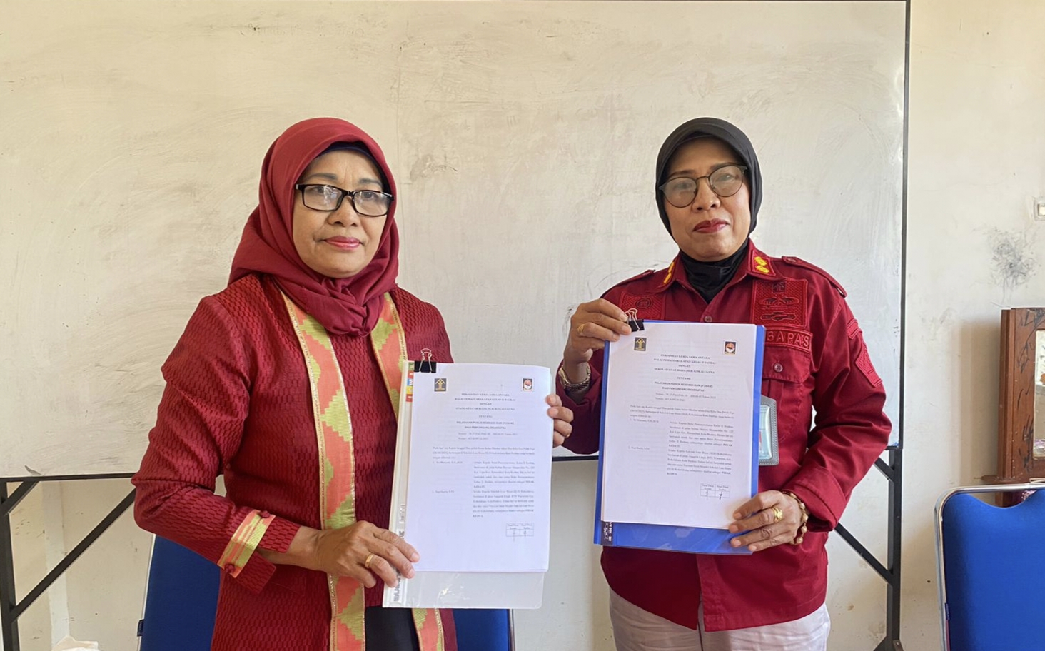 Wujud pencapaian kerja sama di antara kedua belah pihak ini, ditandai dengan dilaksanakannya penandatanganan dokumen Perjanjian Kerja Sama antara Bapas dan SLBN 1 Baubau.